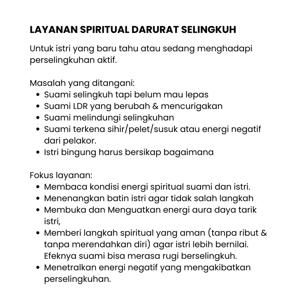 Konsultasi/Pesan Paket Layanan Darurat Selingkuh